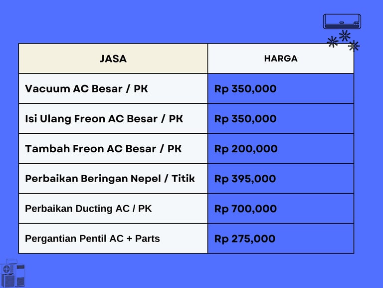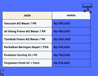 Layanan perawatan AC untuk semua merek dan model, cepat dan efisien.